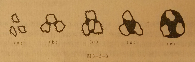 圖3-5-3(c)是粒子之間形成液體橋,但粒子之間還存在著較多的空隙.